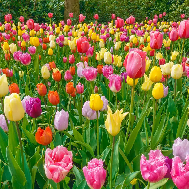 Make tulip season last for weeks and weeks with this mix of early-, mid- and late-flowering tulips. Delightful mix includes a brilliant range of richly hued blooms and intriguing shapes. Plant in full sun to partial shade. Grows 14-24 in. tall. Zones 3-8. 11-12 cm bulbs.