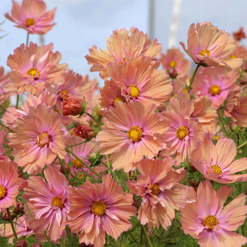 Apricotta Cosmos brings a unique, sunset–washed beauty to the summer garden. Its softly ruffled petals blend apricot, rose, and honeyed champagne tones—shifting in color as the blooms mature and sunlight touches them. This award-winning variety produces abundant, long-lasting flowers atop airy, fernlike foliage, creating a romantic, effortless look in borders, cutting gardens, and pollinator plantings. Reliable, easy to grow, and heat tolerant, Apricotta adds elegance and movement to any sunny space.