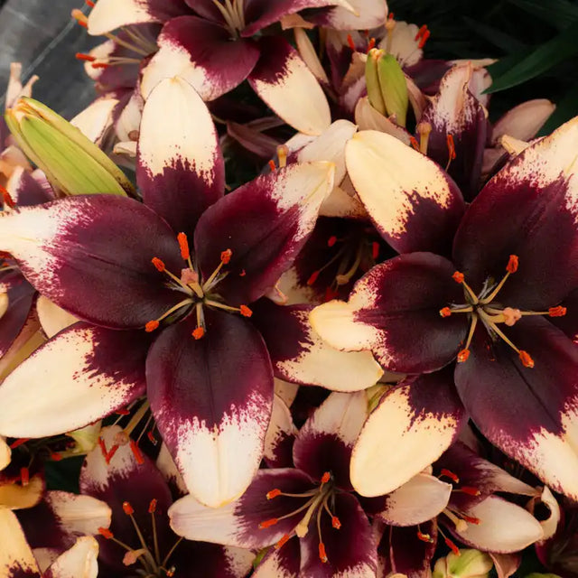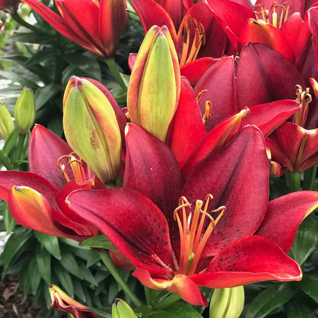 A delightful blend of bold, warm colors, Asiatic Lilies Trio for Borders is easy to fit into gardens and containers. The mix includes Tiny Rocket, Tiny Epic and Tiny Double You Dwarf Asiatic Lilies. Tiny Rocket features dark red flowers with even darker centers; Tiny Epic's burgundy flowers are tipped with creamy yellow hues; and the recently introduced Tiny Double You produces showy bright orange, double flowers. Growing 14-16 in. tall, these perennials are excellent for containers, the fronts of borders, or edging a walkway. For the best effect, mass in good-sized clumps. Plant in full sun to partial shade. Zones 3-9.