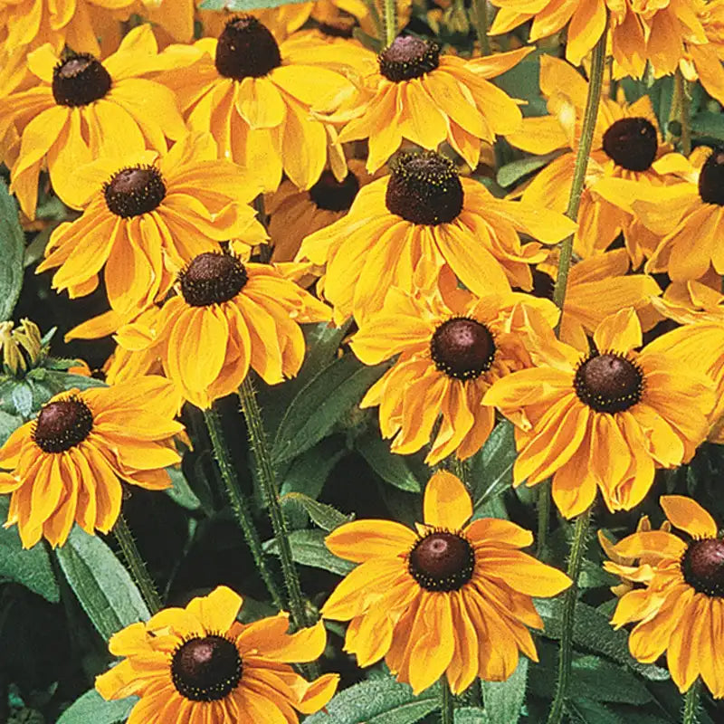 Striking color contrast! Layers of sunshine-bright copper-gold petals radiate out from a large, dark center. Blooms heavily from midsummer to frost; grows 2-3 ft. tall. A longtime favorite for cut bouquets. Spreads to fill an area fast. Easy to grow—tolerates a wide range of conditions but prefers full sun and well-drained soil.