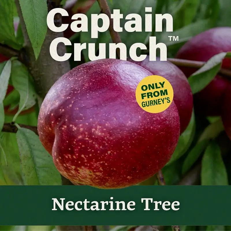 Experience a revolution in nectarine indulgence with our "Neat to Eat" Captain Crunch nectarine, where every bite is a crispy delight. Imagine the perfect balance of sweetness and moisture, captured in a firm texture that won't lose its integrity even when fully ripe. Our unique variety was developed to hold its luscious juiciness, ensuring a mess-free, crisp bite every time. But the magic doesn't stop there. Captain Crunch is not only a pleasure to savor straight from the tree, but also boasts an incredible shelf life. They'll hang ripe on the branch, waiting patiently for you, and even after picking, they stay fresh in your fridge for weeks. And the taste? A bold, tangy nectarine flavor perfect for the modern, busy gardener who loves a fusion of convenience and intense flavor, our Captain Crunch nectarine is a testament to our dedication to innovation and quality at Gurney's Seed & Nursery Co. Get ready for a nectarine experience that's truly out of the ordinary!