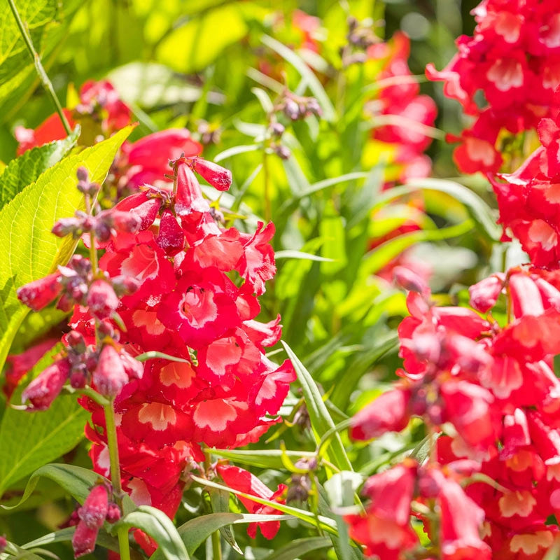 Bright red blooms add vibrant color to the landscape, as well as attract hummingbirds and butterflies, all summer long. Cherry Sparks is a long-blooming variety that marks an improvement over previous varieties of penstemon. Strong, upright, 18-20 in. stems keep the blooms visible in borders, cutting gardens and pollinator beds. Add them to mixed gardens for extra color and plenty of flowers. A native to North America, it is easy to grow and maintain. Best in part shade to full sun. Prefers average soil with good drainage. Zones 5-9.