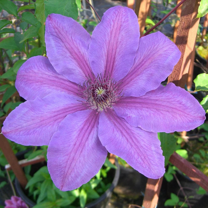 Growing 5-9 ft. tall, this medium-sized vine is ideal for adding vertical interest to the garden and grows well on a trellis or pergola. Brilliant pink-mauve flowers are exceptionally large, reaching up to 7 in. across. Full sun to partial shade. Bareroot. Zones 4-8.