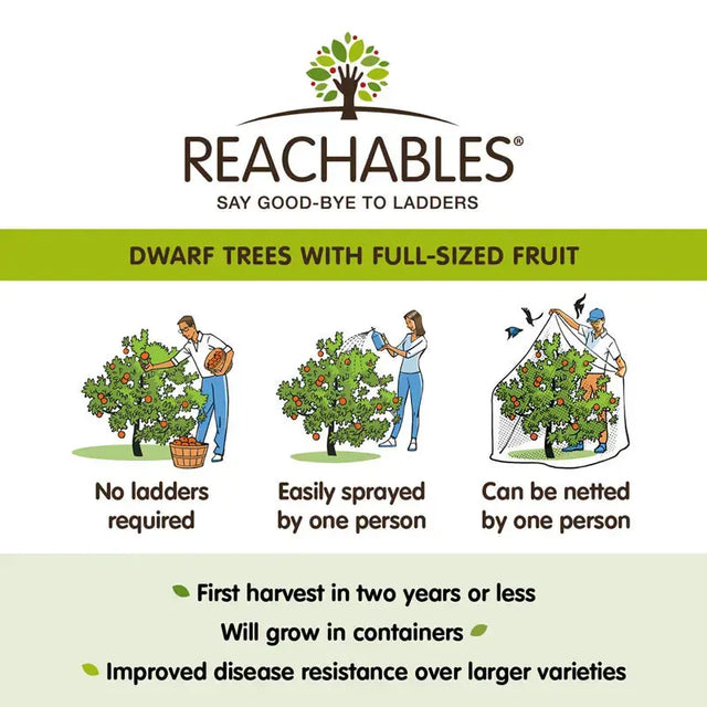 Standard: Very productive. Reachables: 3/4 - 1 bushel. Our Reachables trees bear a small fruit crop in under two years—and larger crops in the subsequent years.