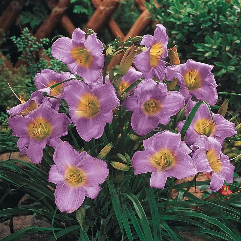 A purple version of the popular, yellow-flowered Stella de Oro Daylily! Purple de Oro Daylily is a compact, or dwarf daylily, that grows 15-20 in. tall and bears trumpet-shaped, 2-3 in. purple flowers with bright yellow-green throats throughout the summer. Pollinators love it! Hardy and easy to grow with very little care, this perennial is adaptable to different soil conditions. It looks impressive when massed over large areas or grown in clumps. For best performance, grow in full sun to partial shade. Zones 3-9.
