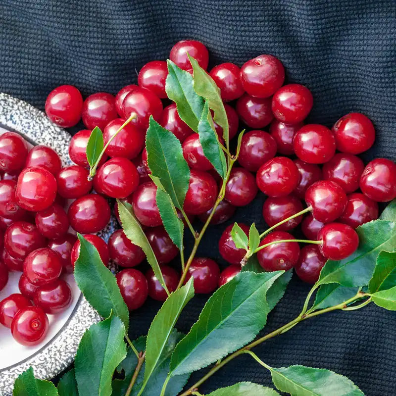 Huge cherries! Fruits grow up to twice the size of our popular Carmine Jewel cherries. They have an excellent flesh-to-pit ratio, so you'll have plenty to enjoy. Each plant yields up to 20 lbs.