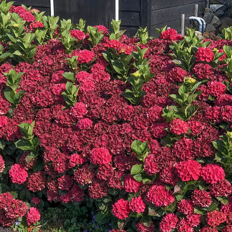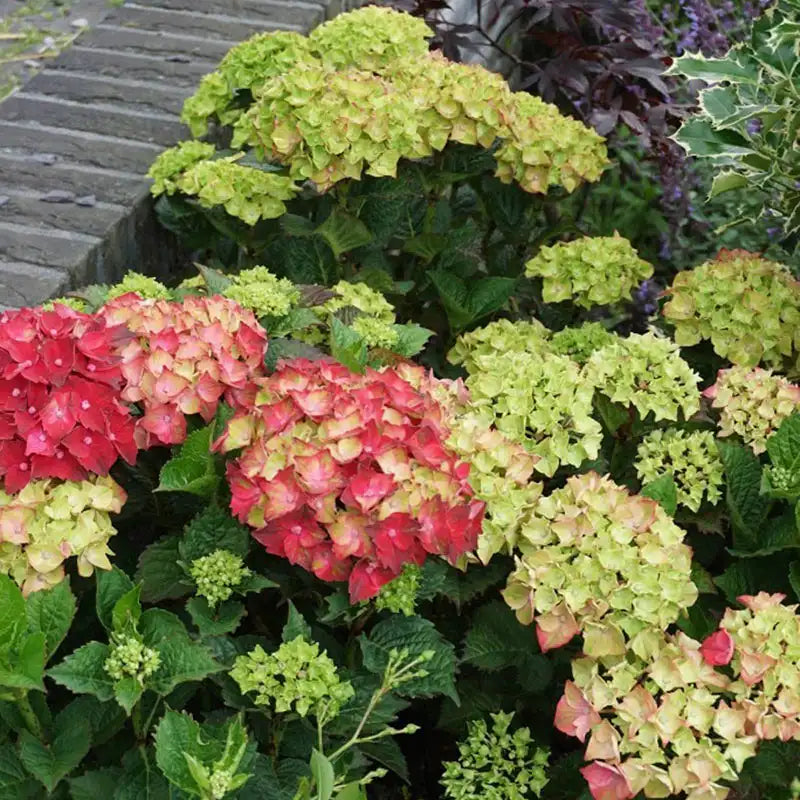 We love so much about this amazing hydrangea! Growing 30-36 in. tall, this compact flowering shrub puts on quite a show. In late spring, apple green, lace-edged flowers open with a tinge of red and then change to red all over. Sturdy stems hold the flower clusters upright and are excellent for cutting. The flowers bloom from late spring to midsummer against dark green foliage. Everlasting Crimson Hydrangea is well-suited for planting in a container or along a garden path. Grows best in partial shade. Zones 5-9.