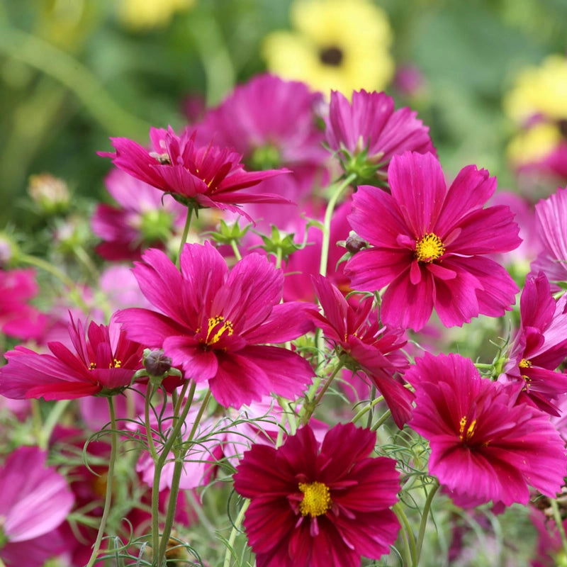 Bring bold, carefree color to garden beds and borders with Fandango Cosmos—a dazzling performer known for its rich, velvety blooms and ferny, airy foliage. This variety produces a profusion of large, vibrant flowers that sway gracefully in the summer breeze, attracting butterflies, pollinators, and compliments all season long. Fandango thrives in heat, poor soil, and dry conditions, making it an easy, reliable choice for gardeners of all experience levels. Whether planted in cottage gardens, cutting gardens, or naturalized spaces, Fandango adds lively movement and a burst of long-lasting color.