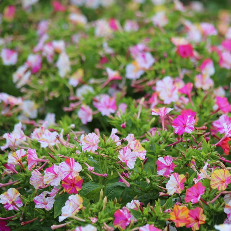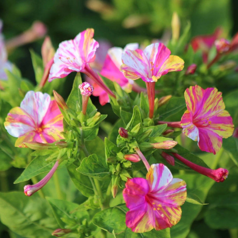 These vigorous, heat-tolerant plants grow into bushy mounds that stay covered in color from midsummer to frost. Perfect for borders, cottage gardens, walkways, and containers, Four O’Clock Marbles Tricolor offers low-maintenance beauty with dazzling variation.