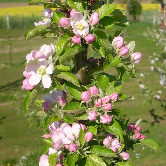 Grow full-sized apples in a small space! Ideal for a container, Golden Treat Urban Apple is a columnar tree that grows 8-10 ft. tall, but is just 2 ft. wide. It's perfect for tucking onto porches, patios and decks, or in a sunny corner of the garden. This fast-growing tree will bear fruit just 1-2 years after planting. Its green-gold apples are tasty with a slightly tart flesh. Two apple varieties are required for pollination, and we recommend planting Tasty Red™, Blushing Delight™, or the Tangy Green™ as a pollinator. Apples ripen in mid-September. Zones 4-8