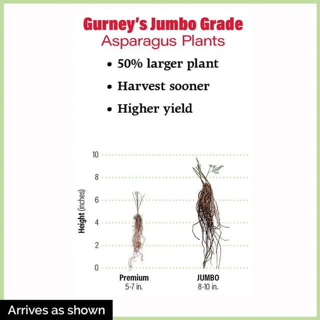 Can't wait for that first asparagus in the spring? Delicious, large spears are ready earlier than other varieties! This hybrid variety is cold-hardy and disease-resistant, with high yields and superb spear quality. Also great for those who sell at market. Be the first one offering asparagus!