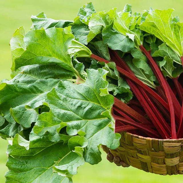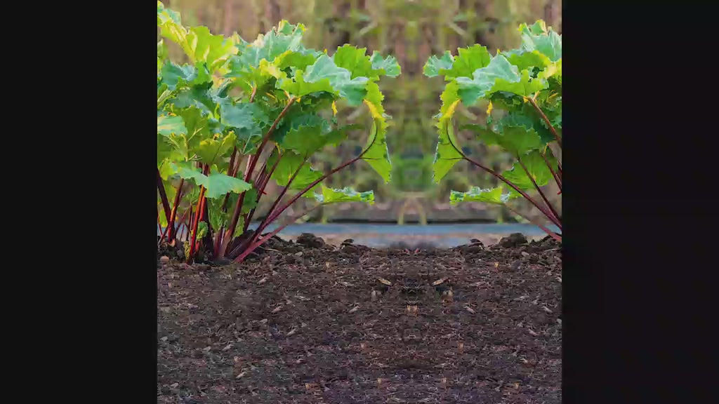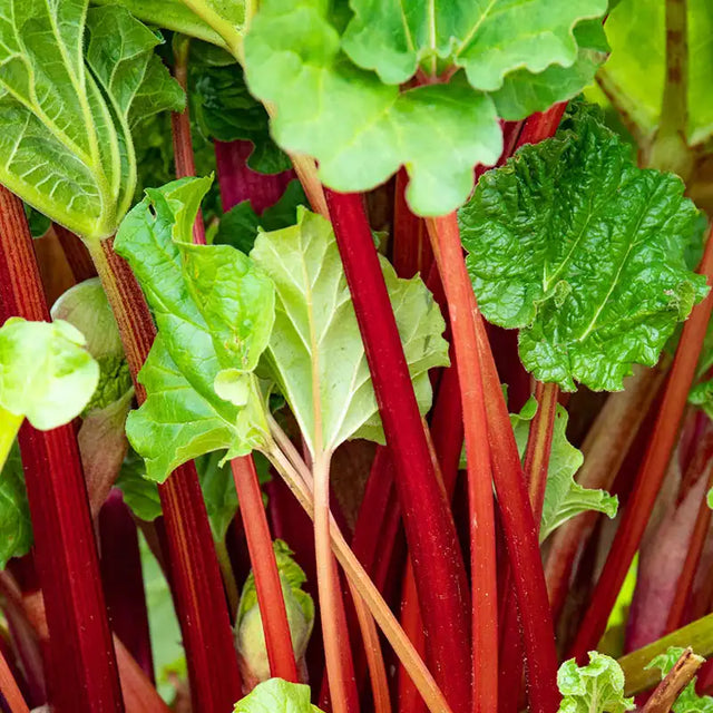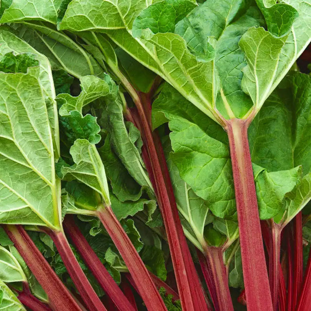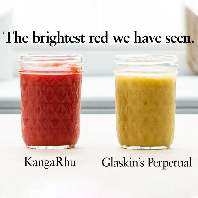 After almost a decade of research, we've done it! KangaRhu is a breeding breakthrough in its heat performance, flavor and pigment. Its stalks are the deepest and darkest red of any rhubarb, and they cook up brilliant red—without hints of green or pink that you'll find in other rhubarb. Its wonderful cooked flavor made it a hands-down winner in our trials. As for its garden performance? We were still harvesting KangaRhu in our Ohio test gardens in mid-July when other varieties had bolted, browned out or just died down. Plant Patent No. 31,875. Zones 4-8.
