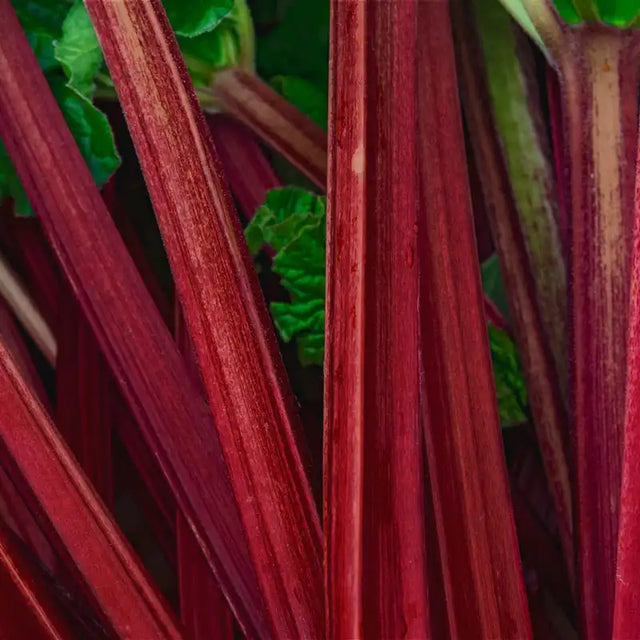 - Deepest red stalks of any rhubarb