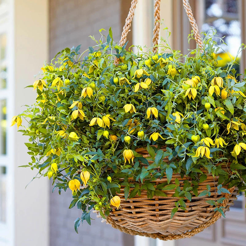 Charming dwarf clematis adds sunny yellow color for months! Clematis Little Lemons grows just 8-20 inches tall, making it ideal for planting in hanging baskets and containers. Nodding, 1-2 inch, bell-shaped, golden yellow flowers bloom from summer to fall, attracting butterflies and pollinators. A Gold Medal winner at Plantarium 2019, Little Lemons also is striking when planted in front borders and even as a ground cover. This perennial vine performs best in full sun to partial shade. Hardy to minus 13 degrees F. Zones 5-9.