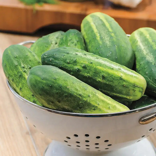 One of our favorite pickling cucumbers, Miss Pickler Hybrid produces abundant crops of medium green, blocky, uniform fruits that hold their crunch during processing. They're ready really quickly, too. Miss Pickler is one of the earliest pickling cucumbers on the market. The gynoecious (all-female) vines ensure abundant crops. Pollinator seed is included. However, if only planting a few seeds, we recommend also planting another cucumber variety, such as Straight Eight Cucumber, to assure good pollination. Cucumber plants can be grown in hills or let the vines climb a fence or trellis for easy picking. 50 DAYS.