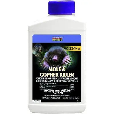 Kills moles in the ground! No traps. No gas. No exposed poisons. Use according to the simple instructions on the package. Quickly eradicate an entire family of moles economically. One teaspoon treats an active burrow or tunnel. Excellent bait acceptance. Can also be used to protect bulbs.