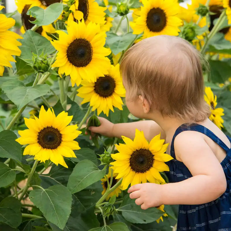 This aptly named, short and stocky sunflower makes quite an impact as a low hedge or in a container. Growing just 12-24 in. tall, just one-third the size of standard sunflowers, it has a multi-branching habit and several flowers per plant. This gives Orange Hobbit Sunflower a fuller, bushier look and a longer bloom period. Its sunny, gold-orange petals are complemented by dark center discs. Sunflowers are summer favorites, and this short sunflower will create a vibrant, eye-catching effect in the garden or on the sunny patio. 80-120 DAYS.