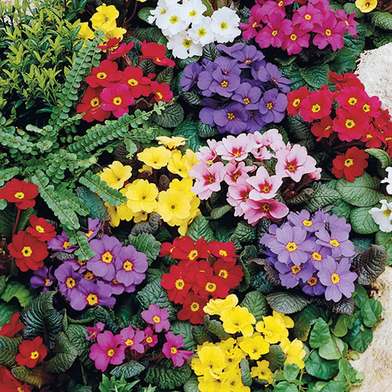 Colorful mix brightens shade gardens in the springtime. Pacific Giant Primrose is a random mix of vibrantly-hued flowers that attract hummingbirds and butterflies. Growing 6-10 inches tall with low-growing, wrinkled foliage, Pacific Giant Primrose is ideal for planting in the front borders of shade or woodland gardens, in containers or in rock gardens. It can also be grown in masses as an eye-catching groundcover. For the best garden performance, plant Pacific Giant Primrose in full shade. Hardy to zone 4.