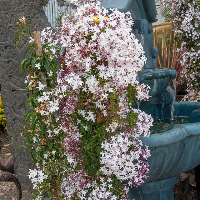 Vigorous vine produces masses of 1-in., pink-flushed, white flowers. Award-winning vine requires frost-free location. Can be grown on a trellis, in containers or as a ground cover. Blooms early spring to midsummer. Plant in full sun. Potted. Zones 8-10.