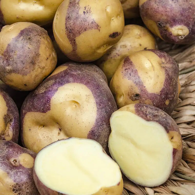 Early. Early to mature and taking the spotlight on the finest gourmet plate, its purplish-red and gold coloring along with a creamy buttery-yellow flesh make Pinto Gold as delicious as it is visually stunning. A top choice for roasting and baking, this fingerling to oval-shaped tuber boasts a superior shelf life making you a brilliant chef for months on end!