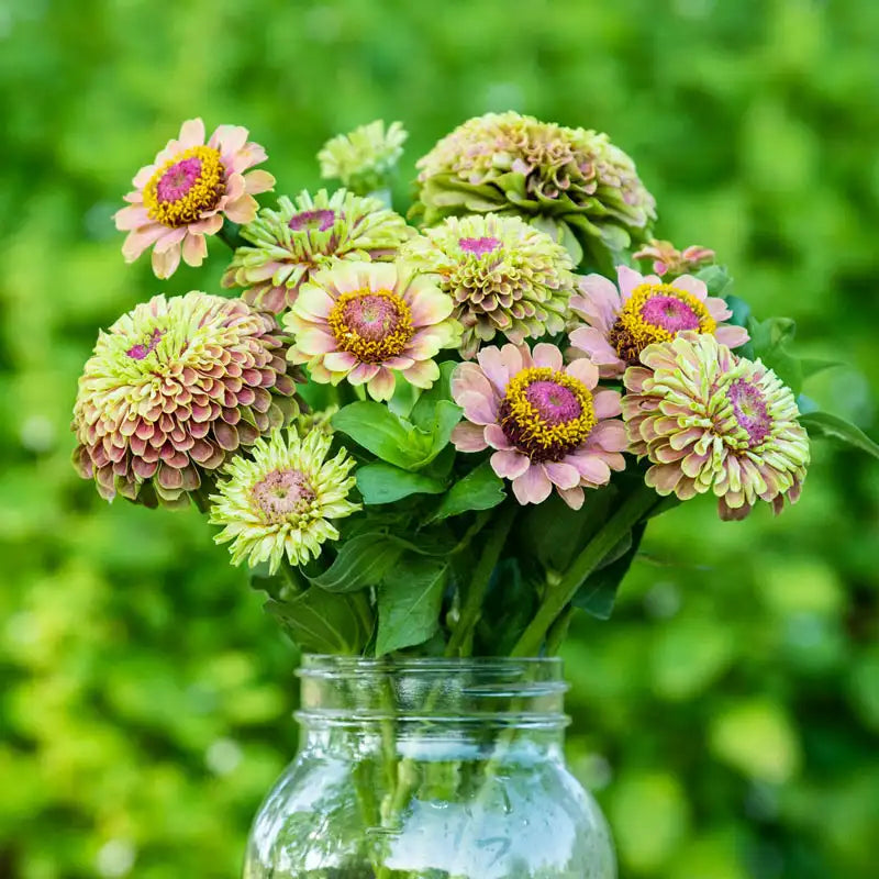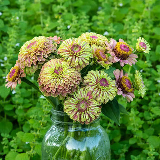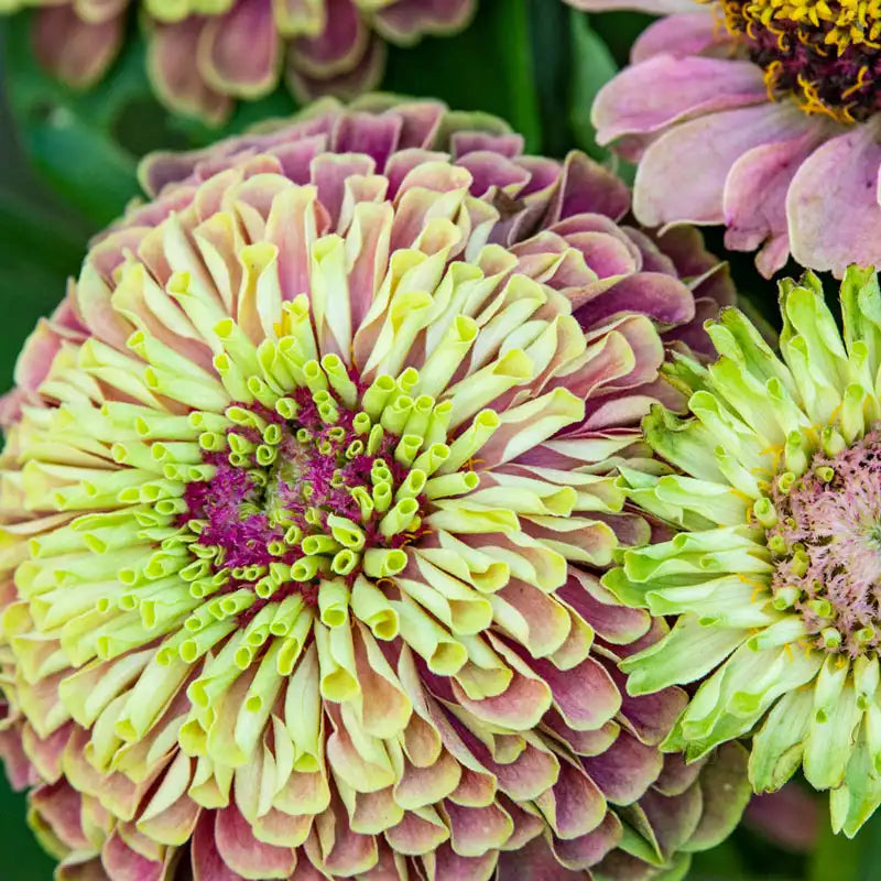 Give a bright and brilliant look to your borders, veggie patches and indoor arrangements with this unique take on a traditional garden favorite! Queeny Lime with Blotch Zinnia features layer upon layer of chartreuse petals that surround a beautiful purple-pink eye. A butterfly go-to, this amazing zinnia turns baskets, beds and containers into a ready-made pollinator garden. The well-branched plants offer plenty of blooms to enjoy in bouquets or outdoor displays. Plus, its extended bloom time will make it a preferred planting year after year.