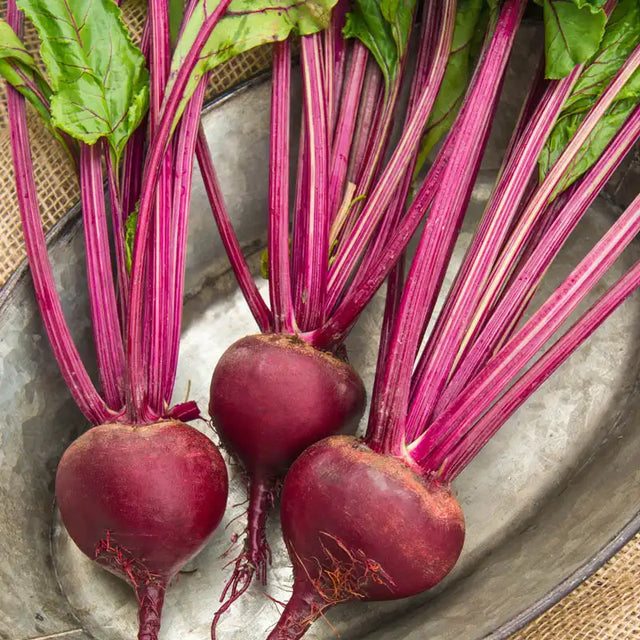 So beautiful, sweet, and flavorful, this attractive mix is perfect for beet lovers! The intense red roots of Red Cloud are extraordinarily sweet, and delicious when cooked, pickled or canned. Its attractive tops are flavorful, too. Harvest at the immature stage for sweet baby beets. It's a great all-around variety. Avalanche's uniform, creamy white roots have no red tinge, and its standout flavor is very sweet with no earthy flavor or bitterness. This 2015 All-America Selections award winner is an ideal choice to add to your spring or fall garden. Boldor has dark golden skin with a bright yellow interior. It is extra sweet and great for juicing, roasting and in salads. It grows quickly and retains its color when cooked. Red Cloud: 55-65 DAYS. Avalanche: 50 DAYS. Boldor: 55 DAYS.
