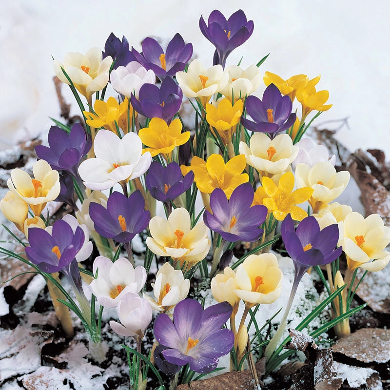 Earliest of all crocuses, this Snow Crocus Mixture brings spring to your garden ahead of schedule. Exquisite blooms poke through the snow to provide cheery colour. Ideal for the garden, beneath windows or along walks. Delightful when naturalized. This colour-balanced blend of gold, white, lavender and striped snow crocuses is one of our best values.
