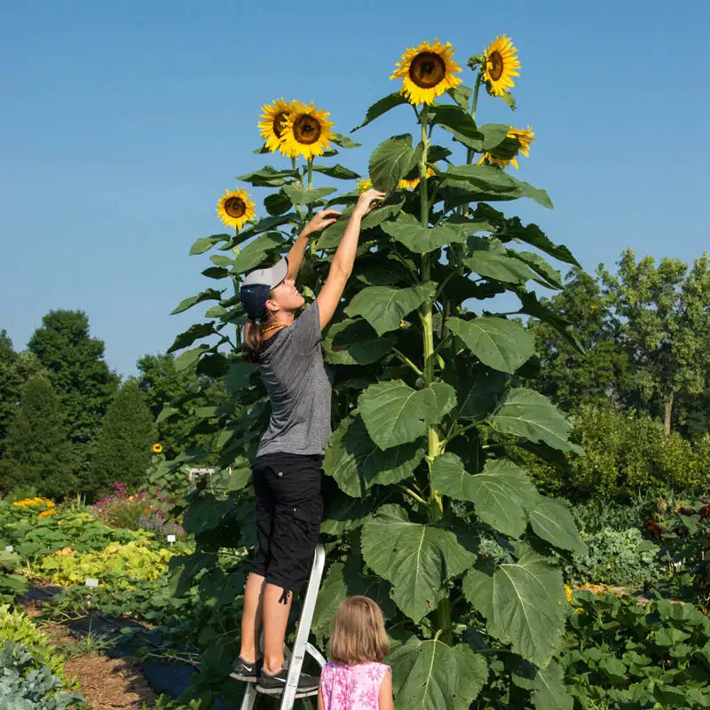 90 days. Amaze your neighbors with these giant, 16-ft. tall stalks abloom with huge 10-in. flowers. Adds sunny yellow drama to midsummer gardens.