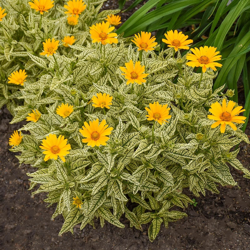 For a perennial plant with real staying power, choose Sunstruck Heliopsis! This vigorous sun lover fills garden spaces with plenty of bright yellow, daisylike flowers from mid to late summer. A compact plant at only 14-16 in. tall, it stands up to adverse weather like a champ. Makes a great container plant, and produces lots of 2 in. blooms that can be enjoyed indoors, too. Unique variegated foliage adds even more color and appeal. Best in full sun to part shade. Zones 4-9. PP25524