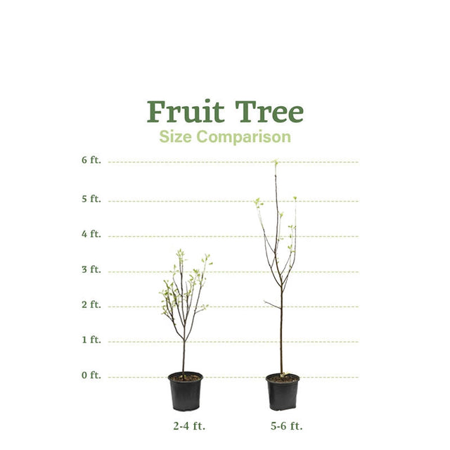 Now available in Reachables size! A Reachables tree produces full-sized fruits on a smaller tree. It's easier to fit into your garden or orchard, even a container will do fine! Thanks to state-of-the-art rootstock technology, these trees remain manageable throughout their life cycle, so a single person can prune, spray, net and harvest the tree, all while standing on the ground. No ladders required! Note: Because the full-sized fruits grow on smaller sized trees, Reachables require a tree support.