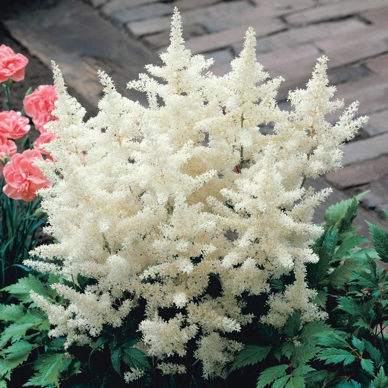 White Glory Astilbe brightens shaded landscapes with graceful, airy plumes of crisp white flowers held above finely textured, deep green foliage. Blooming in early to mid-summer, it brings light and contrast to woodland gardens, shaded borders and along streams or ponds where moisture is consistent.