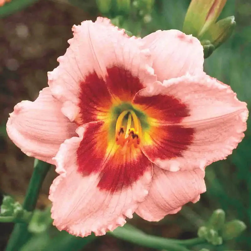 Treat yourself to rich color and fragrance with this award-winning daylily. One of the first to bloom mid-season—4½-5" flowers rebloom all summer long! These popular flowers are lightly ruffled, with soft pink-peach petals and striking wine-purple eye zones. Once established, daylilies are extremely drought and heat tolerant as well as long-lived. Hemerocallis 'Wineberry Candy'